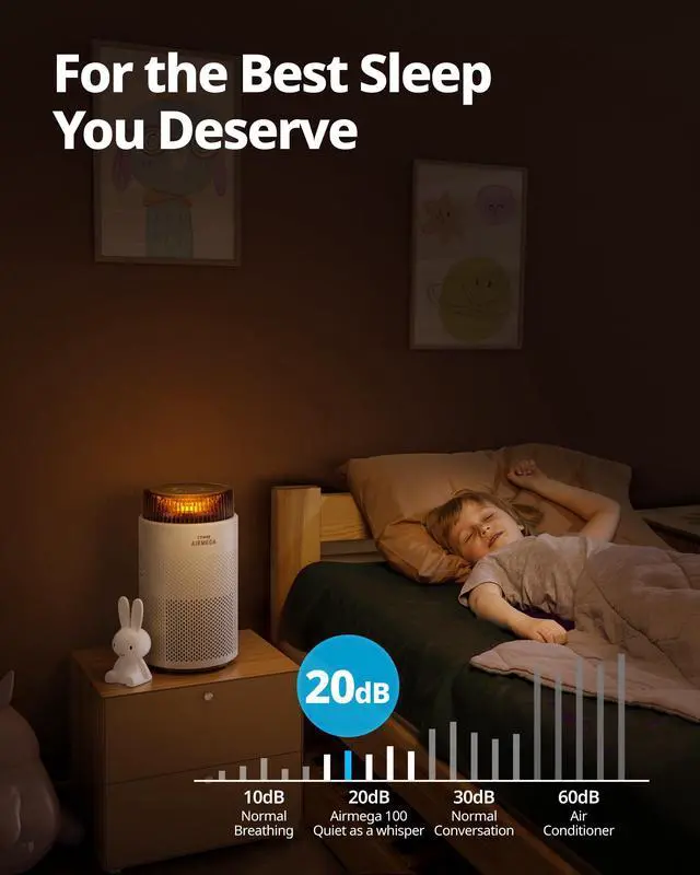 [Sleep Mode] AQI and touch button lights are turned off and the fan runs at the lowest speed to ensure good night's sleep