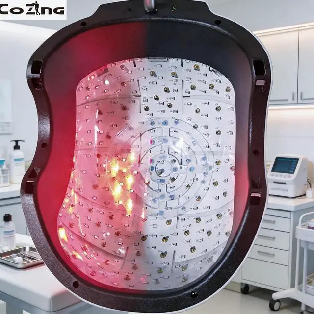 3. Our COZING-C300 adopt the 300pcs laser diode, it`s optimized for the hair growth and can reach all problem areas. 650 nm laserpenetration is 1cm to 3cm, IT COULD stimulate the scalp capillaries and nerves, improve blood circulation and hair quality.