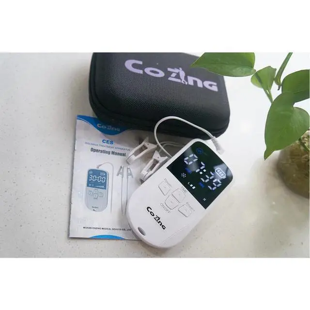 Cranial electrotherapy stimulation (CES) is a quick and safe form of neurostimulation proven to treat depression, anxiety and insomnia. CES increases serotonin levels in the brain by delivering a gentle, pulsed, alternating current via electrodes gently clipped on both earlobes for 15 minutes every day. CES is approved by EMA for over-the-counter treatment of anxiety, depression and insomnia. CES has been suggested as a possible treatment for chronic headaches, fibromyalgia and smoking cessation.
