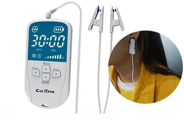 Cranial electrotherapy stimulation (CES) is a quick and safe form of neurostimulation proven to treat depression, anxiety and insomnia. CES increases serotonin levels in the brain by delivering a gentle, pulsed, alternating current via electrodes gently clipped on both earlobes for 15 minutes every day. CES is approved by EMA for over-the-counter treatment of anxiety, depression and insomnia. CES has been suggested as a possible treatment for chronic headaches, fibromyalgia and smoking cessation.