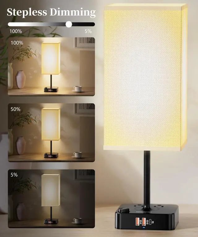 COZOO Multifunctional Table Lamp Desk Light with Built-in Charger and AC Outlets