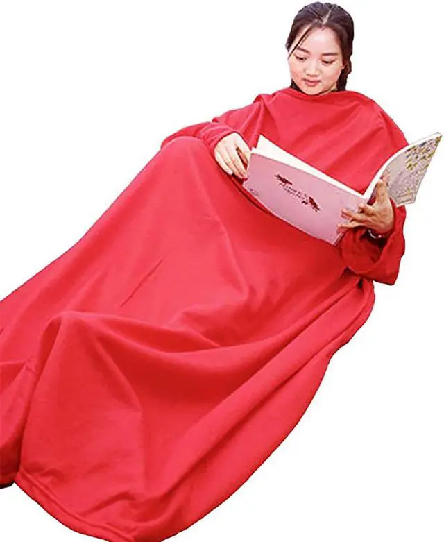 Don't miss out on the perfect companion for your moments of relaxation choose the Blanket with Sleeves in red and experience unmatched coziness. Its large 54" by 71" size will fit most adults.