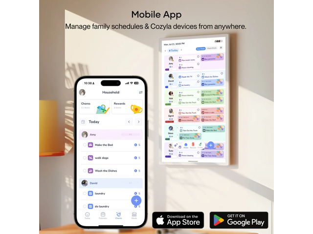 - You can create multiple dashboards as needed with widgets like calendar, chore chart, meal plan, checklist, clock and weather etc. Turn Cozyla to your all-in-one family command center.