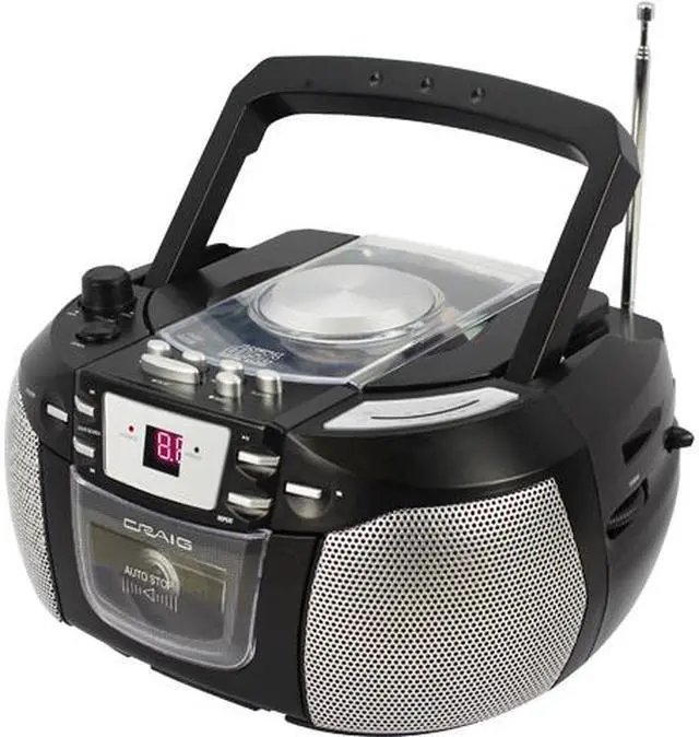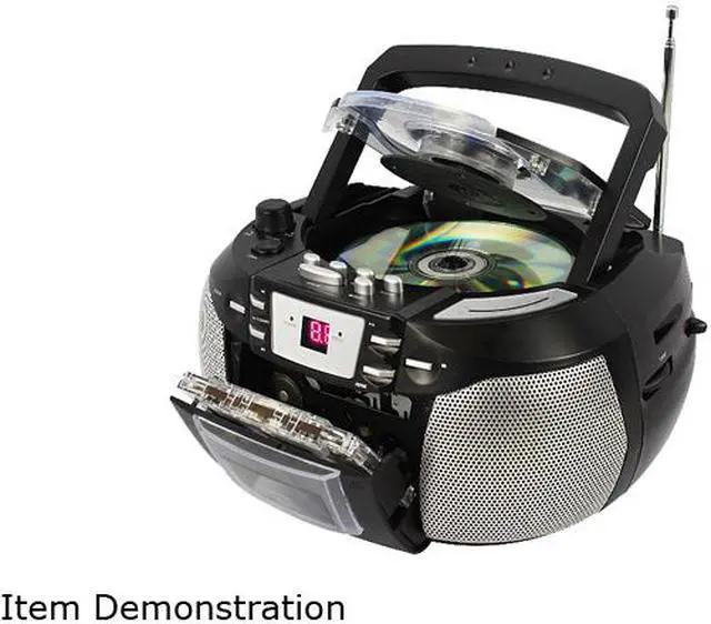 | Features | Top loading CD player Programmable CD player LED display AM/FM radio 6 keys cassette player / recorder Connect to any audio device via 3.5mm aux in port AC operation DC operation (uses 6 x "C" size batteries, not included) |