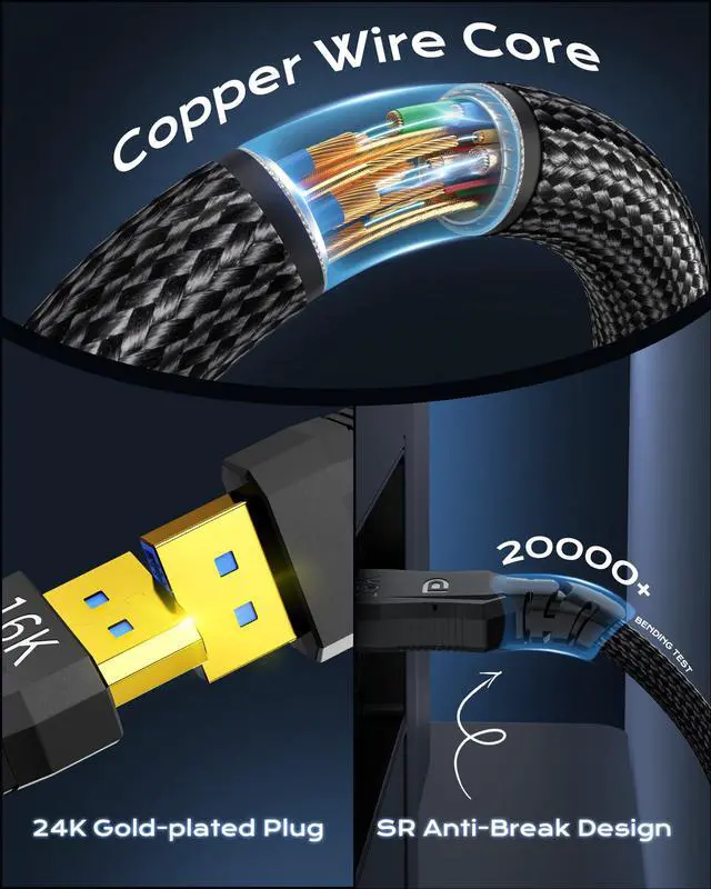 Quality ImprovementUpgraded and thickened copper wire core, 24k gold-plated plug, and multiple shielding such as aluminum foil, ground wire, and Al-MgWire Mesh. Double anti-interference and more stable transmission. Nylon Braided makes the cable more strong
