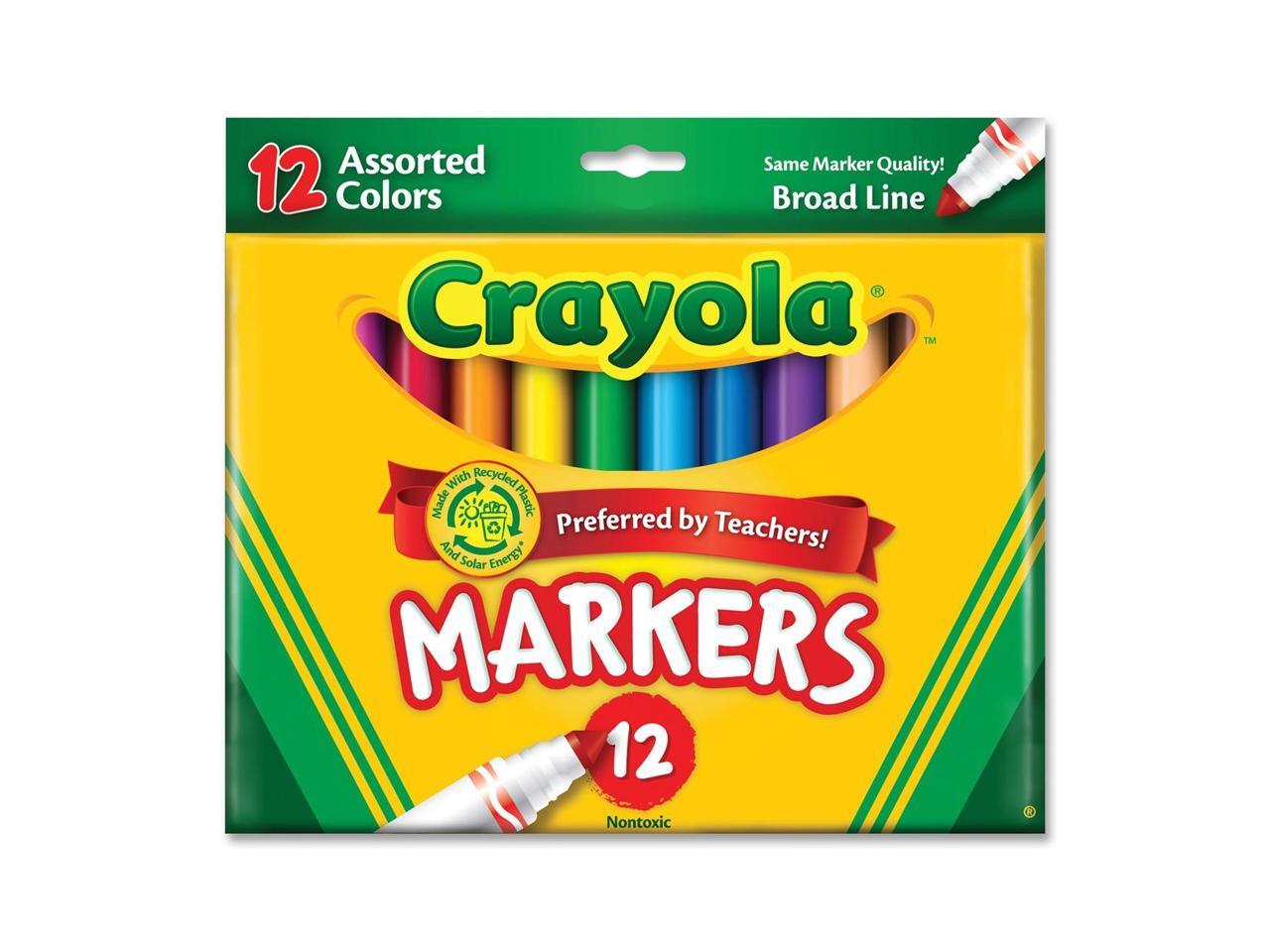 Crayola 58-7712 Non-Washable Markers, Broad Point, Classic Colors, 12/Set