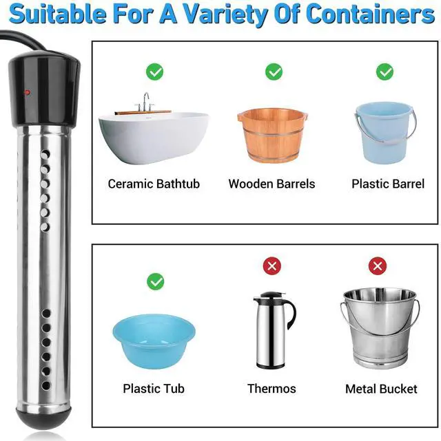 Immersion Water Heater - It is suitable for rapid heating of non-conductive containers such as bucket, bathtub, small pool, washbasin, and mini inflatable swimming pool.