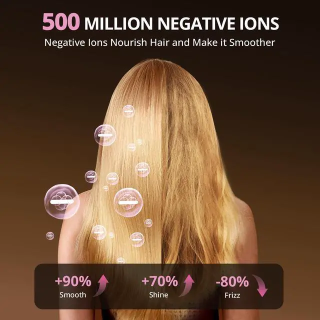 500M Ionic: The hair dryers for women releases 500 million negative ions to neutralize static electricity, lock in moisture and repair the cuticle, reduce frizz, make hair soft, fluffy and shiny, and achieve professional hair care effects.