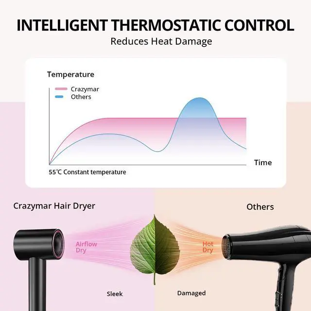 Intelligent Temperature Control: Our diffuser hair dryer has built-in NTC temperature control, which can accurately adjust the temperature 100 times per second to prevent overheating and no damage your hair.