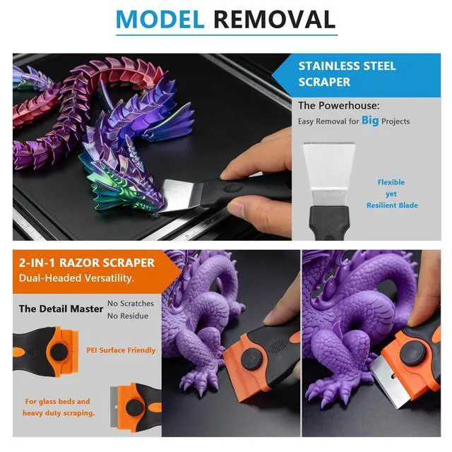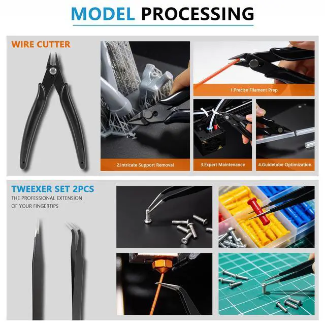Compatible with All FDM & SLA Printers:This 3D printing accessories kit works with most popular printers including Ender, Prusa, Anycubic and Bambu Lab. Ideal tools for 3D printing beginners, hobbyists, makers and professionals working on various printing projects.