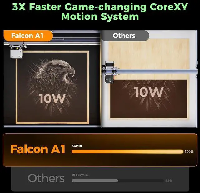 Lightning-Fast Engraving: Advanced CoreXY motion system, 80W output, and 10W diode laserup to 600mm/s speed and 0.05 mm accuracy for sharp, intricate engravings and fast cutting.
