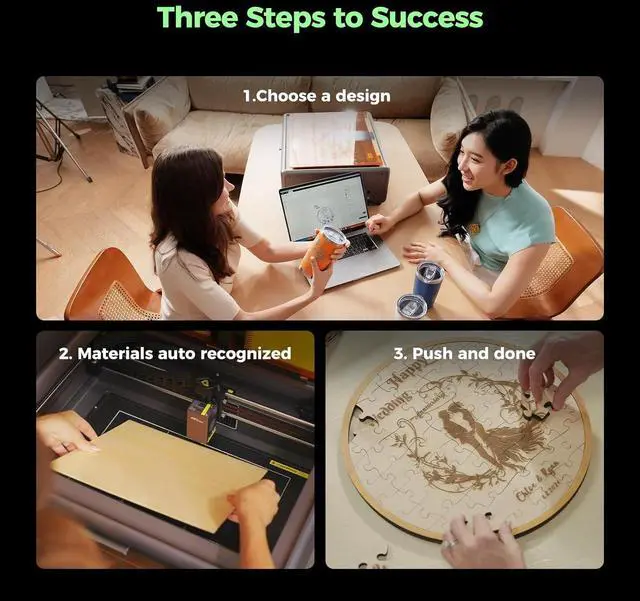 Smart HD Camera Auto Material Recognition: The built-in HD camera scans and recognizes your material, applying optimal settings automatically for perfect results every time! No need for trial and error.