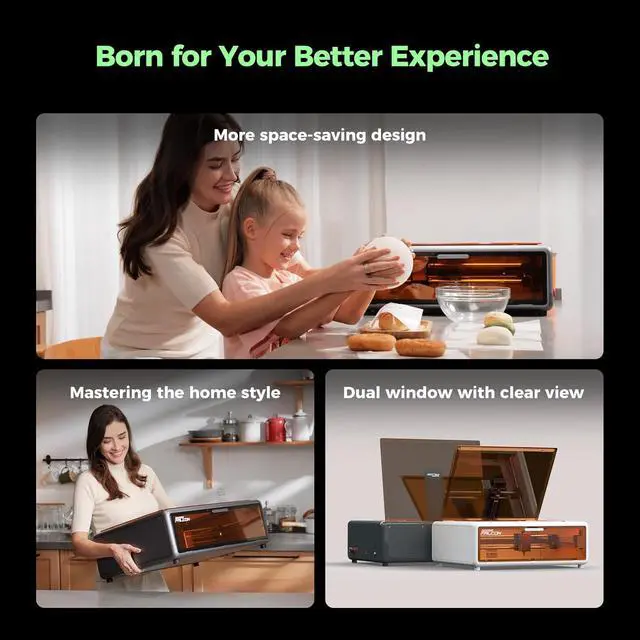 Fully Enclosed for Class 1 Safety: The transparent enclosure blocks 99% of laser lightuse safely anywhere, no goggles needed. Features emergency stop and automatic lid shutoff.