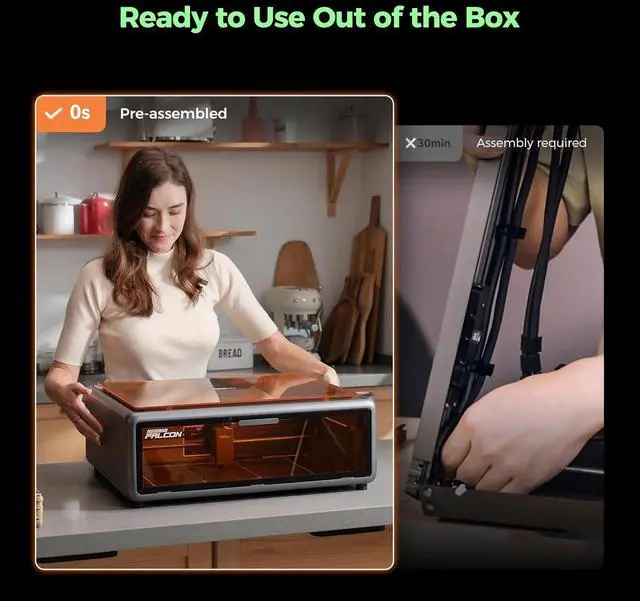 Ultimate Convenience: Arrives fully pre-assembledjust unbox and start engraving! Double-door design and see-through panels make setup, observation, and loading effortless.