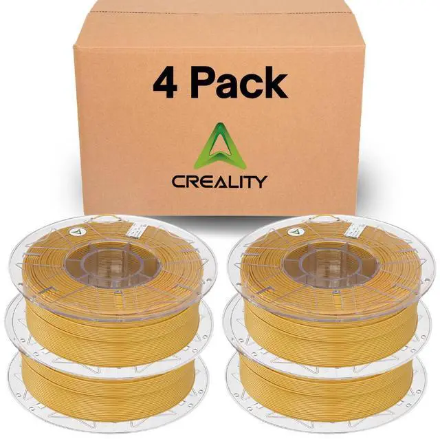 Creality Hyper PLA Filament 4 Pack is optimized for high-speed 3D printing up to 600mm/s. With ± 0.03 mm accuracy, enhanced toughness, and smooth extrusion, it delivers precise, strong models. Compatible with most 1.75 mm 3D printers, this 1kg Gold spool is ideal for rapid and detailed prints.