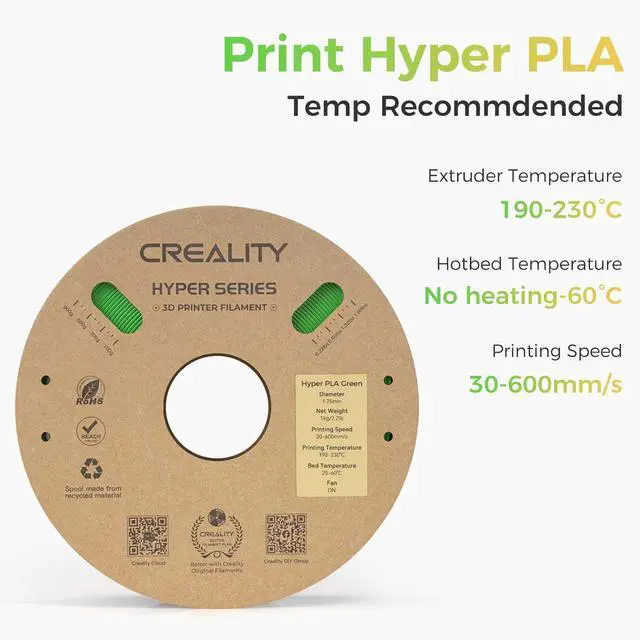 Print faster and more precisely with Creality Hyper PLA! Designed for high-speed 3D printing (up to 600mm/s), this filament offers superior dimensional accuracy, excellent layer adhesion, and enhanced strengthideal for hobbyists and professionals alike.