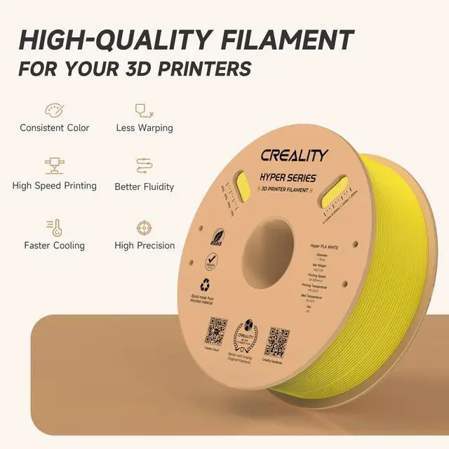 Print faster and more precisely with Creality Hyper PLA! Designed for high-speed 3D printing (up to 600mm/s), this filament offers superior dimensional accuracy, excellent layer adhesion, and enhanced strengthideal for hobbyists and professionals alike.