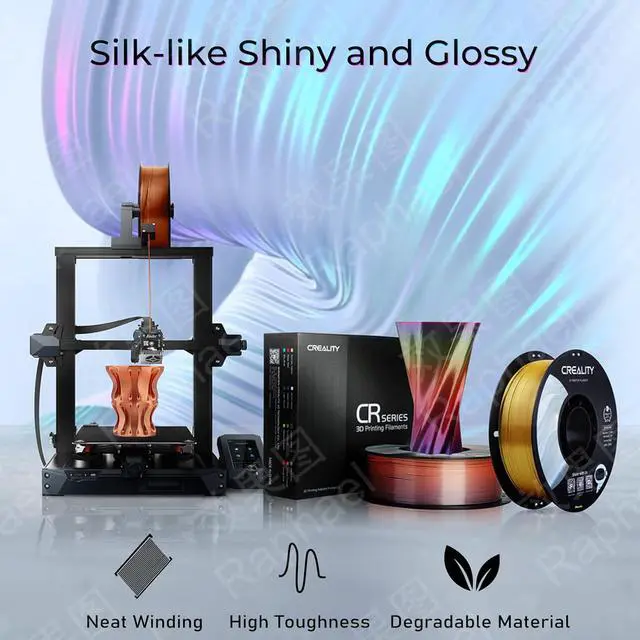 The Creality Silk PLA 3D Printer Filament is designed for creators who demand high-quality, visually stunning prints. With its silk-like texture and metallic high gloss finish, this filament is perfect for decorations, artistic designs, and functional parts. Made from environmentally degradable PLA, it features low shrinkage, no warping, and easy molding, ensuring smooth and consistent printing.