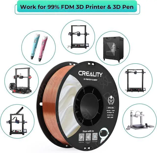 Compatible with 99% of FDM printers, including popular brands like Creality Ender and CR series, Anycubic, ELEGOO, and MK3, this filament offers versatility for a wide range of projects. Its clog-free and tangle-free design, combined with neat winding, ensures smooth feeding and reduces filament waste. Vacuum-sealed packaging with a reusable bag keeps the filament dry and dust-free, preserving its quality over time. Whether you're a professional or a hobbyist, the Creality Silk PLA Filament delivers exceptional results with every print.
