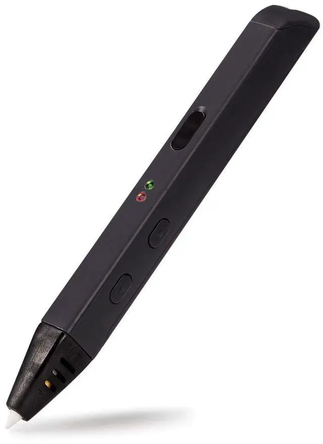 The Super 3D Pen uses the same gearbox and replaceable nozzle design as the Pro 3D Pen. It does not have the OLED display or discrete temperature adjustment. There is instead a temperature adjustment screw for switching between ABS and PLA.
