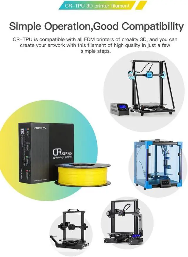 Compatible with most FDM 3D printers, this filament offers fast printing speeds up to 120mm/s, making it 35 times faster than ordinary TPU. Whether you're creating rubber seals, phone cases, or mechanical parts, the Creality TPU Filament delivers exceptional flexibility, toughness, and print quality.