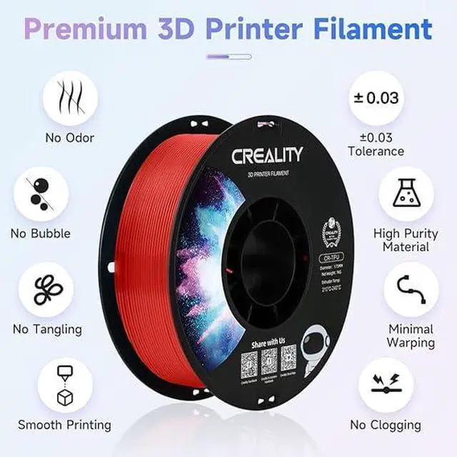 Compatible with most FDM 3D printers, this filament offers fast printing speeds up to 120mm/s, making it 35 times faster than ordinary TPU. Whether you're creating rubber seals, phone cases, or mechanical parts, the Creality TPU Filament delivers exceptional flexibility, toughness, and print quality.