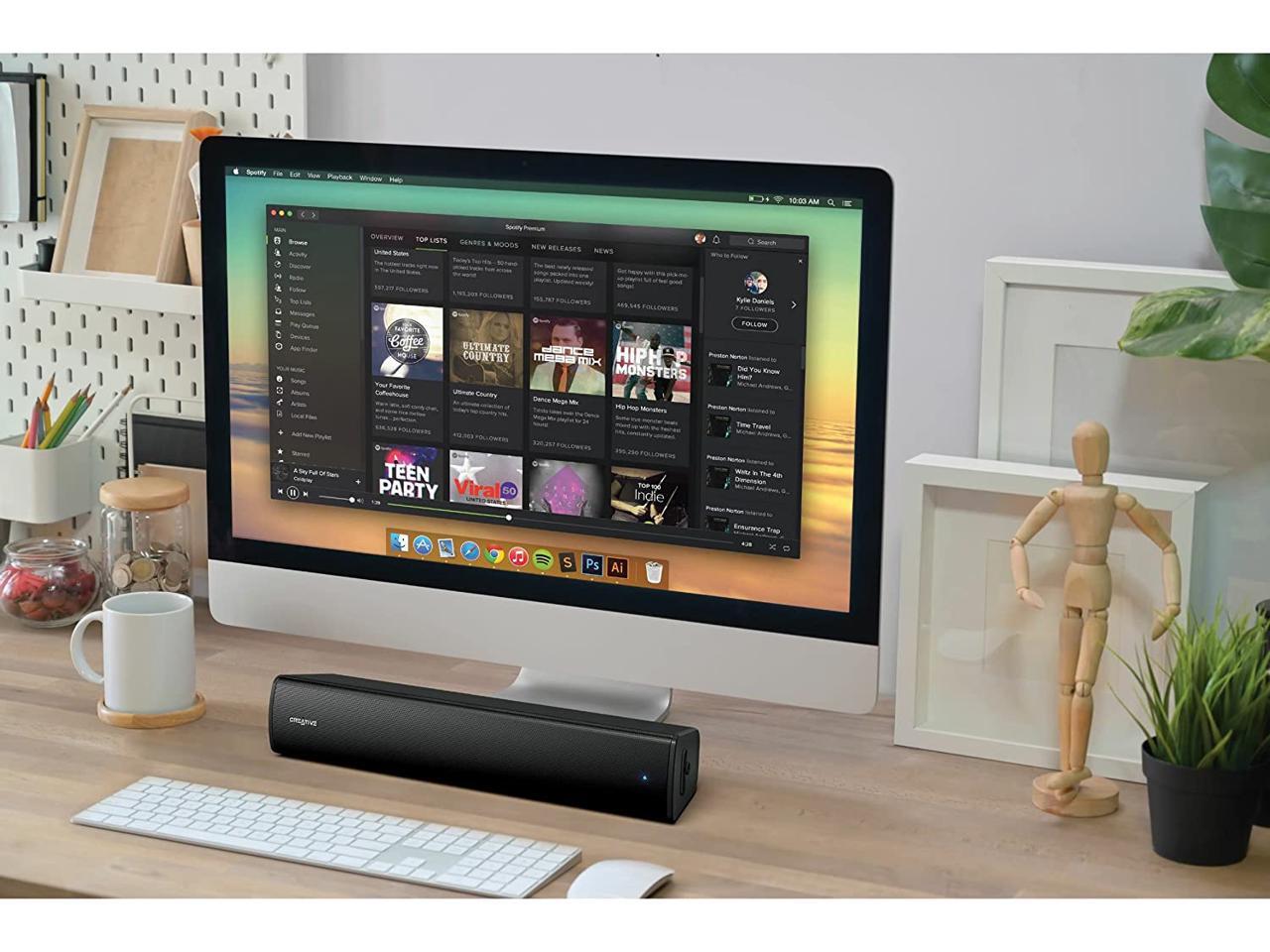 Creative Stage Air V2 Compact Under-Monitor USB Soundbar for PC, with Bluetooth 5.3, Dual-Driver and Passive Radiator, up to 6 Hours of Playtime, Compatible with PS5 and Nintendo Switch