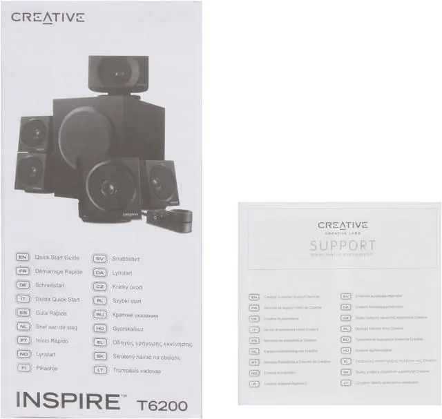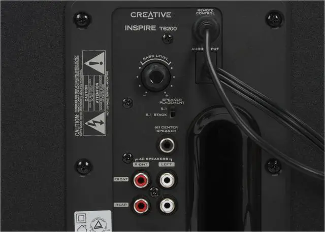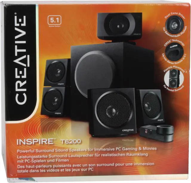 | Features | Powerful 5.1 speakers for exhilarating gaming and cinematic movies Flexible layout and configuration - converts 5.1 surround to frontal surround experience CMSS Upmix technology that transforms stereo source to 5.1 sound field Dual Cone drivers deliver balanced, natural-sounding audio Powerful subwoofer with adjustable bass control Wired remote that features microphone input, headphone jack, power and volume control |