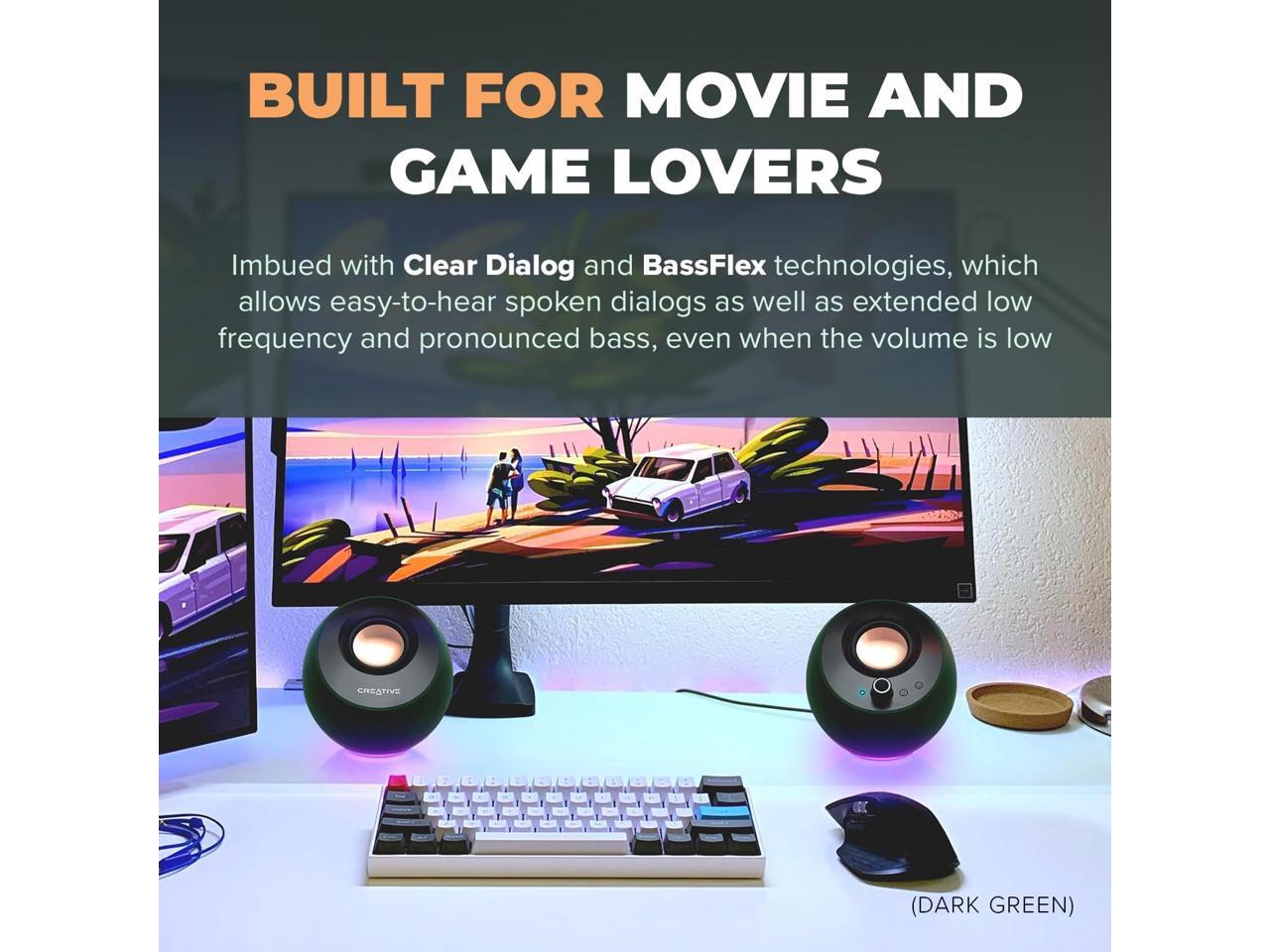 Creative Pebble Pro Minimalist 2.0 USB-C Speakers with Bluetooth, RGB Lighting - Black