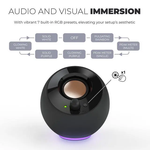 Joining the legendary Pebble family, the Creative Pebble SE is here to shake up your setup with its vibrant personality. Building upon the beloved original, which earned accolades as the "Best PC Speakers," this new addition brings RGB lighting to the party while keeping all the features you adore.