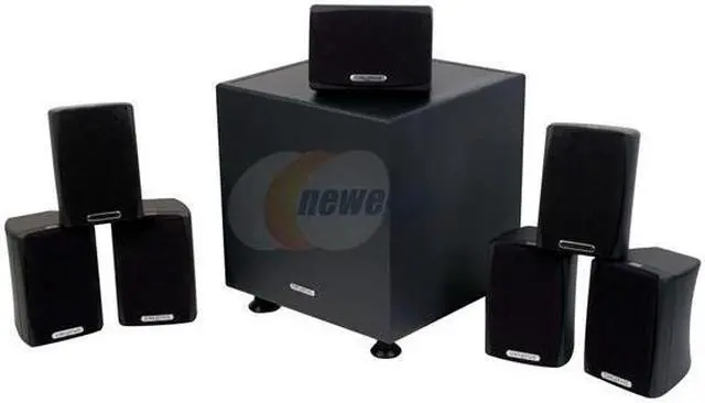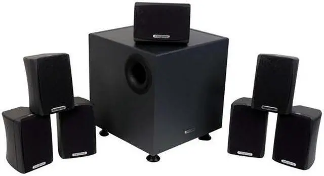 | Package Contents | Six wall-mountable two-way satellite speakers One wall-mountable two-way satellite center satellite speaker (Horizontal orientation) One subwoofer One Audio Control Pod One wireless remote control (batteries included) Six satellite speaker desktop stands One center satellite speaker monitor stand (Downward facing) Three 10ft / 3m cables for front speakers Two 16-1/2ft / 5m cables for side speakers Two 23ft / 7m cables for rear speakers 7.1 audio cable User manual |