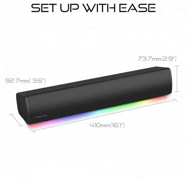 A single USB-C cable* is all you need to bring the Sound Blaster GS3 to life. Delivering both audio and power, reduce any cable clutter, with easy-to-reach buttons and volume control knob on the right side of the soundbar.