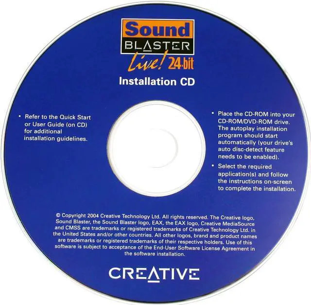 | Package Contents | Sound Blaster Live! 24-bit card Drivers for Windows® ME, 2000 SP4 and XP SP1 Creative Software Pack |