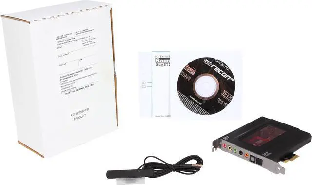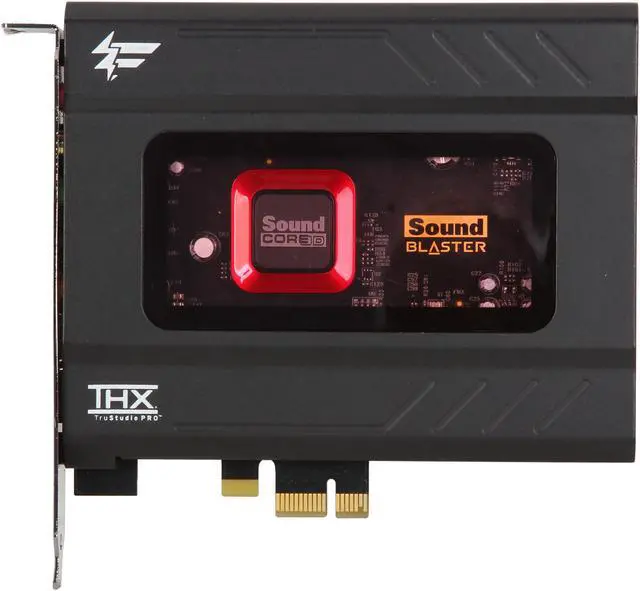 | Features | Endorsed by Fatal1ty Chosen by professional gamers, certified and tested to achieve peak gaming performance. Powered by Sound Core3D quad-core audio processor The revolutionary Sound Core3D Audio and Voice chipset accelerates THX TruStudio Pro and CrystalVoice processing effects, drastically improving your gaming experience with faster frame rates, more immersive gaming audio, and crystal clear voice communications. THX TruStudio Pro technologies THX TruStudio Prosound technologies create unprecedented levels of audio realism including stunning 3D surround effects for your speakers and headsets CrystalVoice voice enhancement and clarity technology Express yourself and be heard clearly in video conferencing, multiplayer games and online chats. Understand how CrystalVoice technologies work. Sound Blaster beamforming microphone When used with CrystalVoice Focus, the included stereo microphone creates an acoustic zone and suppresses noise outside it, enabling you to be heard with amazing clarity. Dedicated high quality headphone amp Supports studio quality headphones and headsets of up to 600ohm impedance. Dolby Digital Live encoding Dolby Digital Live encoding allows you to connect to your decoder or home theater system through a single digital cable for compelling 5.1 surround sound from any source. Scout Mode - Hear them before they hear you. This proprietary technology allows you to hear your enemies from further away, giving you a distinct tactical advantage in combat. Works with Windows 8 We have updated audio drivers that will allow you to enjoy the ultimate in Sound Blaster performance in Windows 8. |