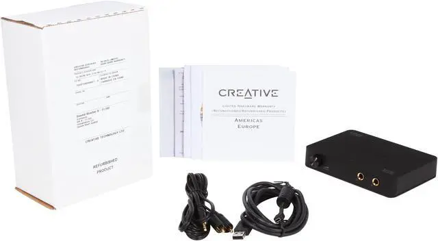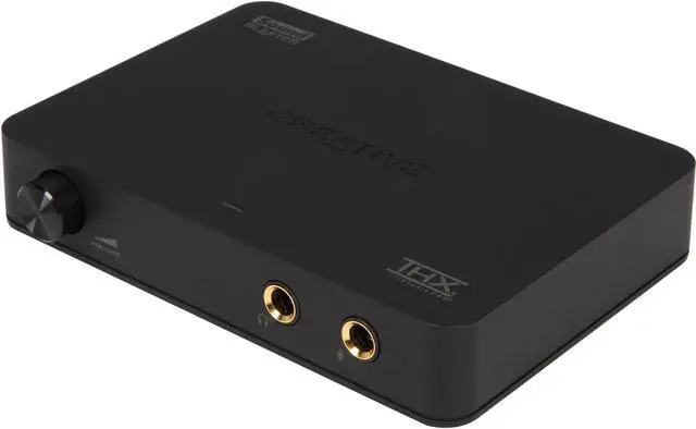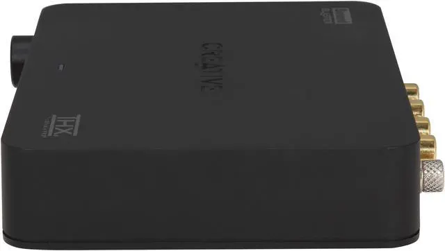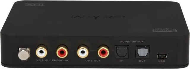 USB Sound Blaster X-Fi HD is an audiophile-grade sound system with premium connectivity for your Notebook or PC. The front panel includes a conveniently located 1/4-inch microphone input and a 1/4-inch headphone jack, with a studio-quality headphone amp and volume control. The rear panel features an optical I/O, gold-plated stereo RCA I/O, and an integrated phono preamp for direct recording of your vinyl collection from your turntable. Media Toolbox software lets you record, convert, enhance, and organize your digital music easily, while THX TruStudio Pro technology brings you the same great audio experience found in live performances, films, and recording studios.