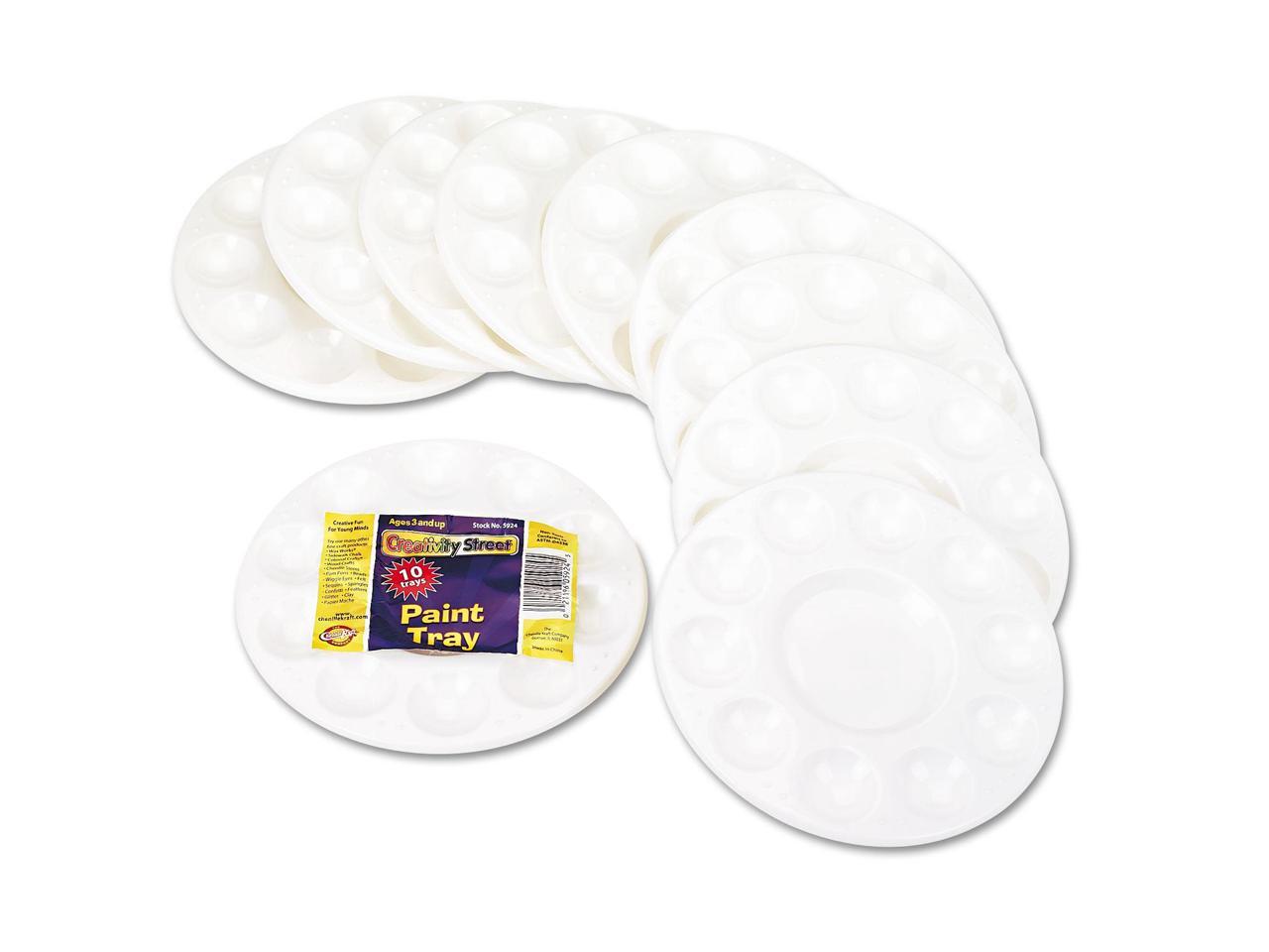 Round Plastic Paint Trays for Classroom, White, 10/Pack