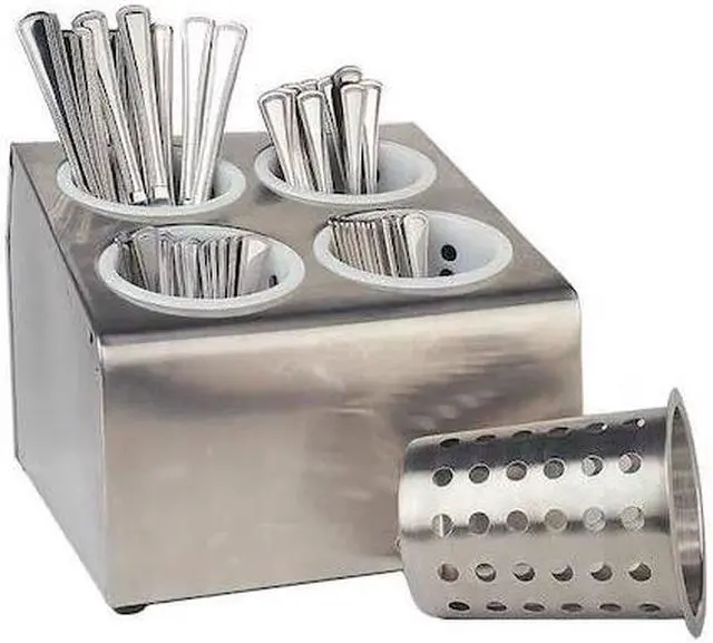 Flatware Dispenser, Product Type Flatware Dispenser, Color Silver, Material Stainless Steel, Number of Compartments 4, Overall Height 8 in, Overall Width 10 in, NSF Certified No. This item has been restricted from sale in the following state (s): []
