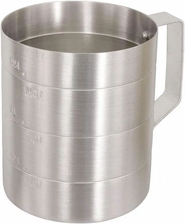 Measuring Cup, Material Aluminum, Color Gray, Capacity 2 qt, Dry/Liquid Dry, Product Type Dry Measure, Graduation Subdivisions 2 qt, NSF Certified Yes. This item has been restricted from sale in the following state (s): []
