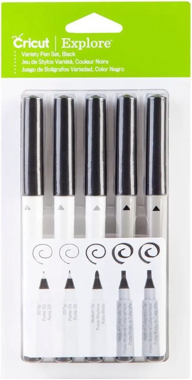 2002948 CRICUT PEN SET MULTI BLACK 5PCCricut Maker Explore Air 2 Pen Set Multi Black 5pc- Use to write a greeting on a card journal your photo memories personalize a gift tag and much more Set includes five black pens in four sizes two 2 0 calligraphy tip one 0 8 glitter gel one 1 0