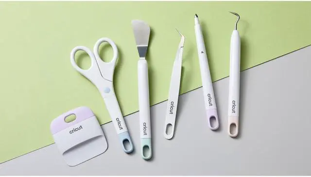 Craft in style with the Cricut basic tool set in fresh complementary hues. This five-piece set gets you started with the basic tools you need for a Cricut crafting session. Youll be equipped to precisely and expertly handle most DIY projects from vinyl for deals to iron-on decor projects, to cardstock masterpieces and thats just the beginning. Its a essential companion for all Cricut cutting machines. Contains: Five Tools.