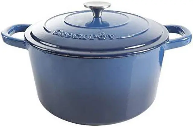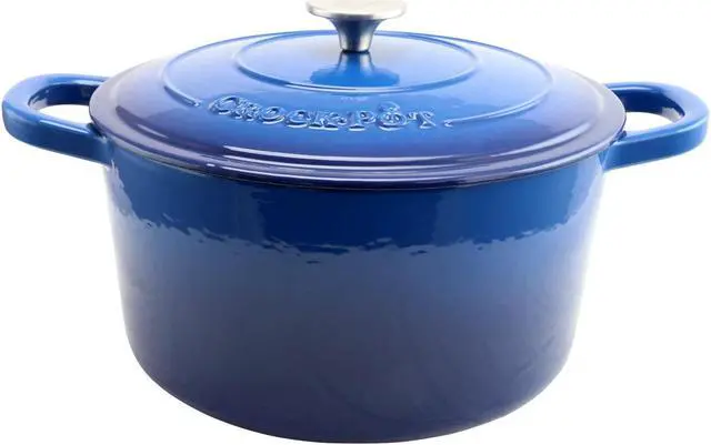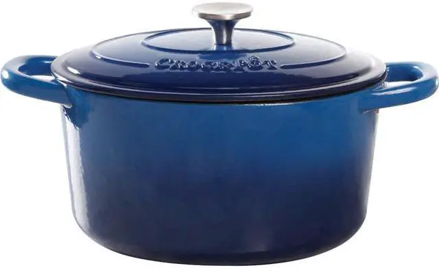 Start cooking up something tasty in the Crock-Pot Cast Iron Dutch Oven. This 7-quart dutch oven has a non-stick enamel surface that allows you to bake or broil in any convention oven. This round slow cooker dutch oven is safe up to 450 degrees so it distributes and retains heat evenly. This original slow cooker has many classic cooking features for you to explore.