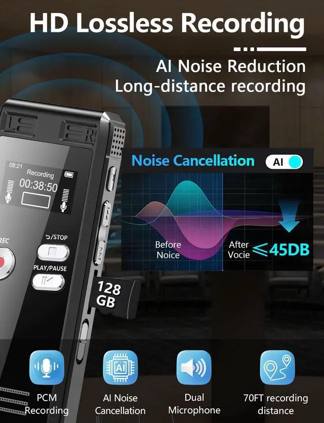 Voice Recorder, Voice Activated Recorder, Digital Voice Recorder, Voice Recorder, Voice Activated Recorder, Voice Recorder with Playback, Voice Recorder for Lectures , Audio Recorder, Dual Microphone 3072 Kbps A-B Repeat Recording, MP3 Player Activated Recorder, voice recorder equipped, digital voice recorder with transcription, sound recorder, evp recorder ghost hunting, grabadora de voz, dictaphone, recording devices discrete