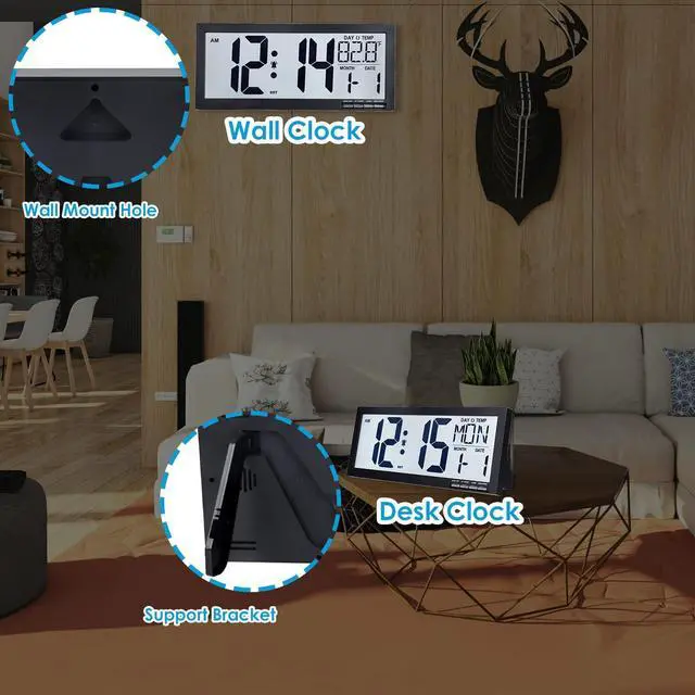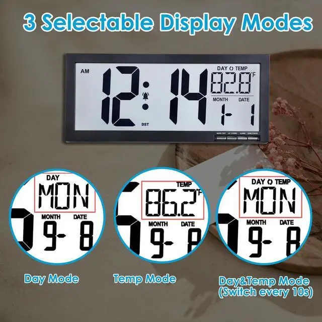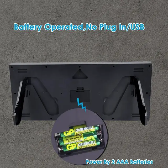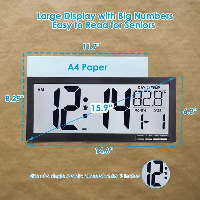 Can't See The Time Clearly? -This jumbo 16-inch clock features extra-large, high-contrast digits that are crystal clear from across the room, perfect for kitchens, offices, living room, school or for those who need a little visual aid. LCD screen :14x6 inches,the time display : 8.5x4.1 inches.