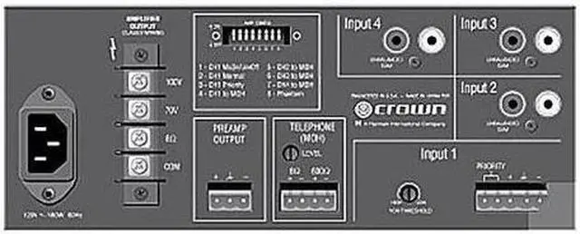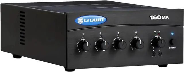 Where professional sound quality and reliable performance are paramount, the 160MA 4-Channel 60 Watt Commercial Mixer/Amplifier from Crown Audio stands out. This high-quality, durable mixer/amplifier is specifically engineered for commercial applications, making it an ideal choice for a wide range of audio tasks including paging, background music, and music-on-hold systems.