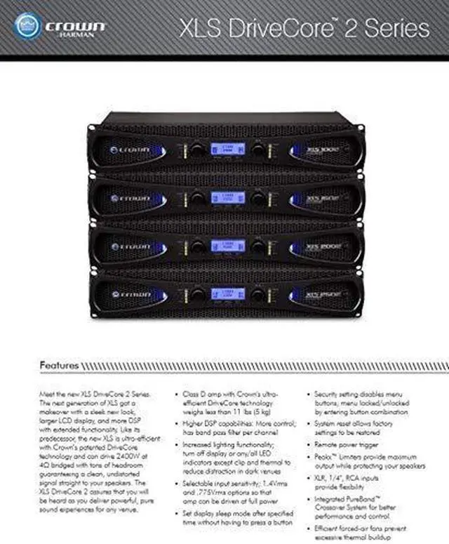 How to Install:Simply connect the Crown XLS1002 Two-channel power amplifier to your audio system following the provided instructions for optimal performance.