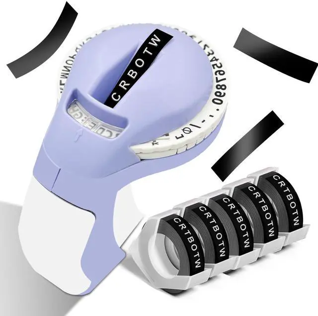 Product includes: One purple embossed label printer and 5 rolls of embossed label tape (5 rolls black)