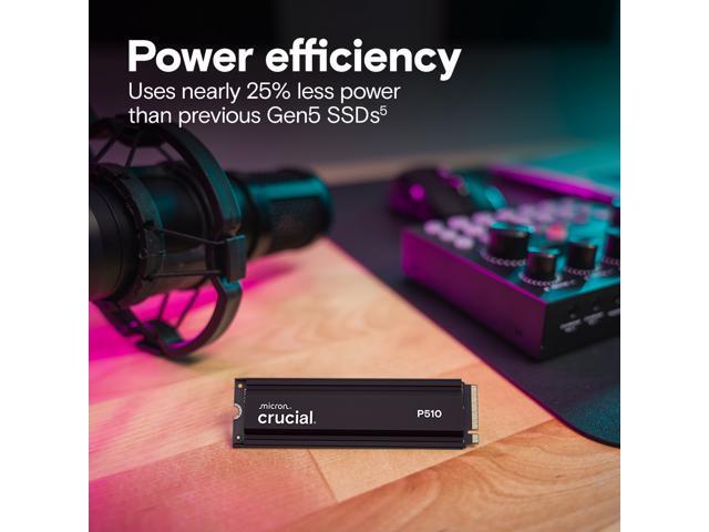 Crucial P510 1TB Gen5 NVMe SSD with Heatsink, Up to 11,000 MB/s, PCIe 5.0 M.2 2280 SSD, Internal Solid State Drive, Compatible with PS5 CT1000P510SSD5