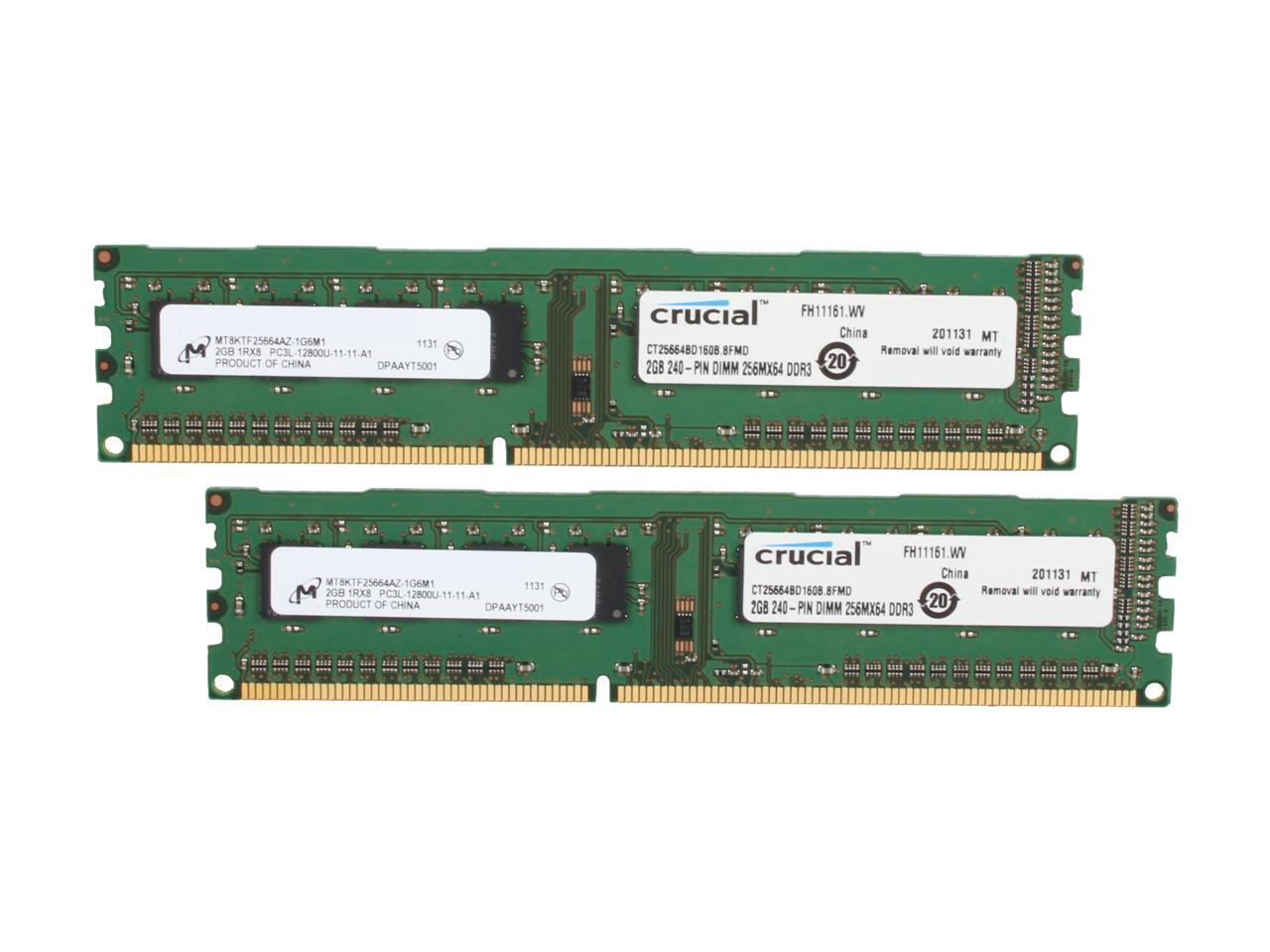Crucial 4GB (2 x 2GB) DDR3L 1600 (PC3L 12800) Desktop Memory Model CT2KIT25664BD160B