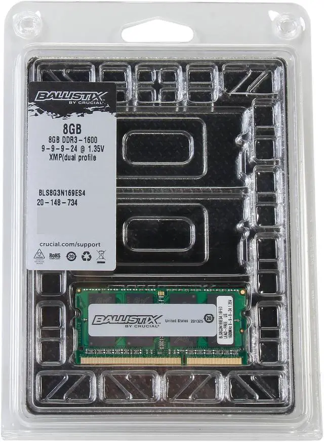 DDR3 PC3-12800Engineered to operate at 1600MHz at standard timings of 9-9-9-24 and 1.35V, this 8GB Ballistix DDR3 memory module is ideal for DDR3 based Intel or AMD platforms and is guaranteed compatible.