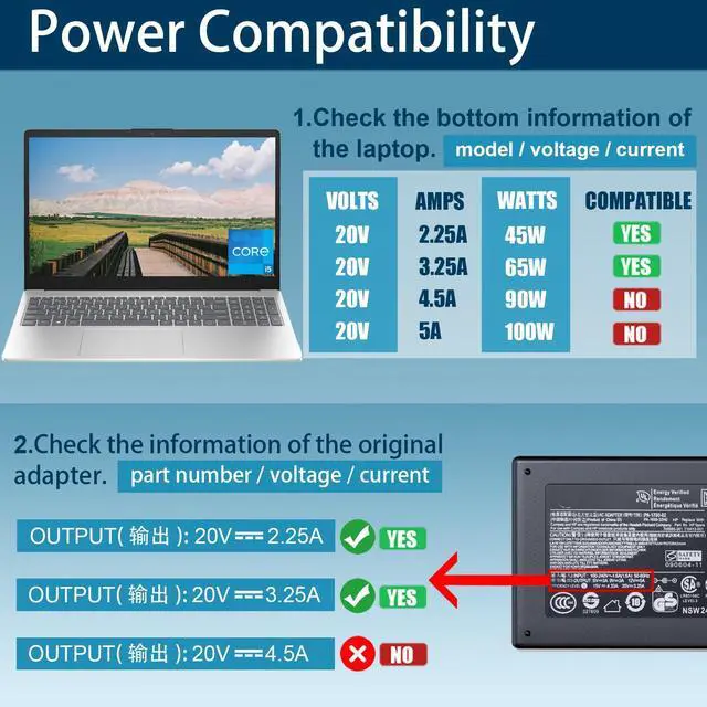Compatibility With HP 45W & 65W Models and Part Numbers:
